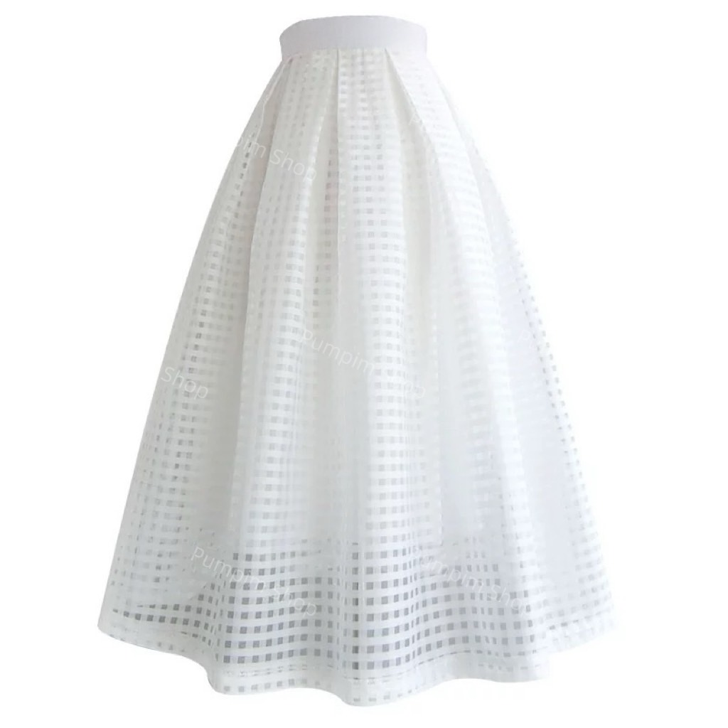 กระโปรงยาวลายตารางผ้าแก้วสุดหรู พร้อมซับในดีไซน์พอดีตัว