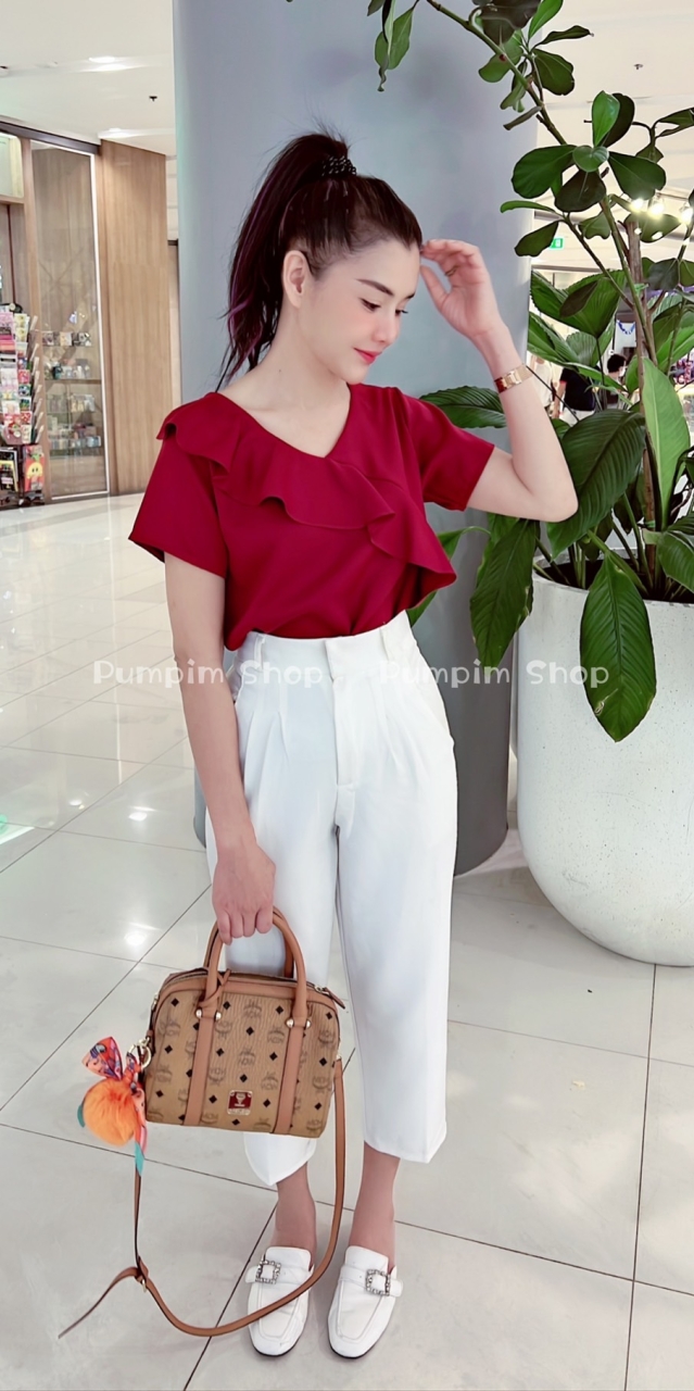 303 Views 💫 เสื้อคอวี ดีไซน์เก๋ แต่งระบายเฉียง เพิ่มความชิค!